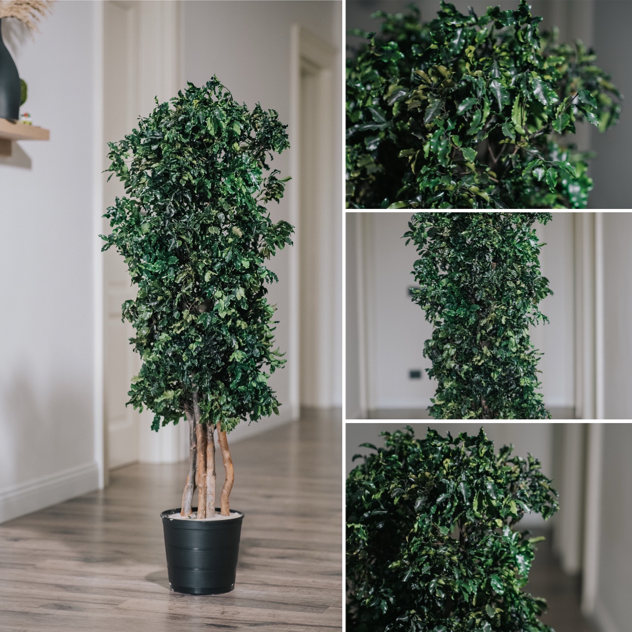 Arborele Pitosporum stabilizat este ideal pentru decorarea interioarelor elegante, fie că vorbim despre spații rezidențiale, birouri sau zone de recepție. Frunzele sale dense, lucioase și structura verticală echilibrată oferă un aer sofisticat și bine definit oricărui colț de cameră.