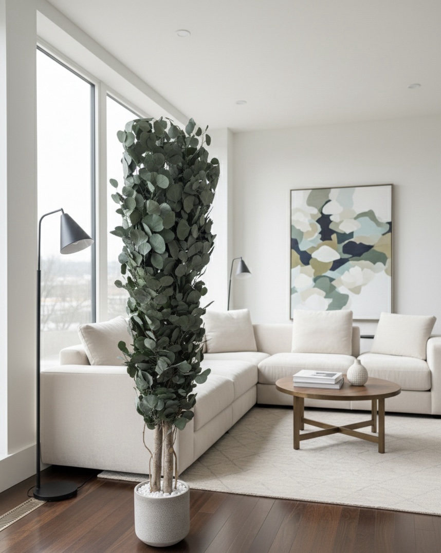 Arborele Populus este un eucalipt natural stabilizat, apreciat pentru frunzele sale rotunjite, în nuanțe de verde intens, care creează un decor sofisticat și natural în orice spațiu. Cu o formă alungită și siluetă aerisită, acest model este potrivit atât pentru interioare rezidențiale, cât și pentru spații de birouri, recepții sau showroom-uri.