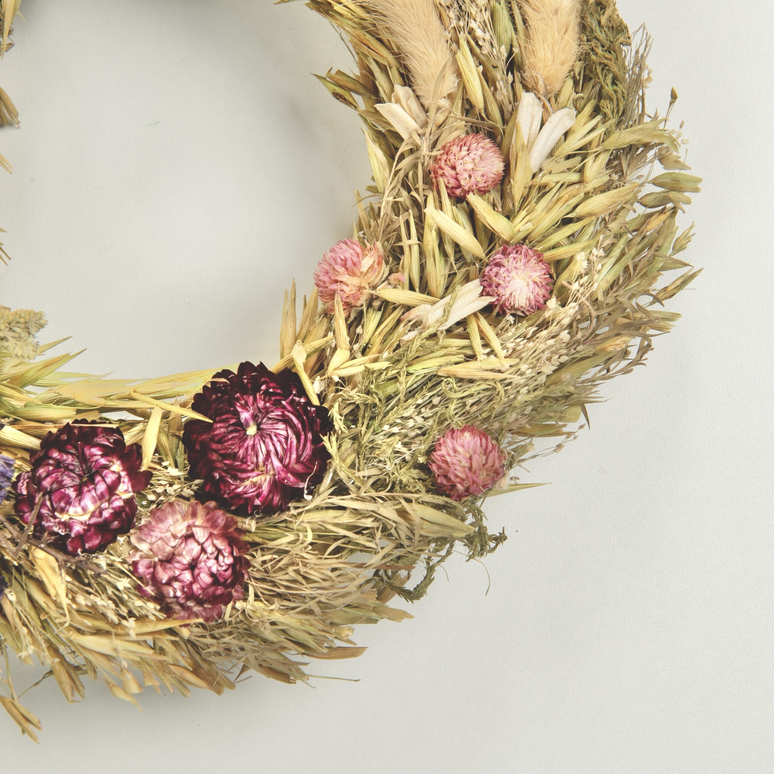 Această coroniță cu flori uscate naturale de 28 cm este alegerea perfectă pentru a adăuga un accent rafinat și natural în orice decor. Realizată dintr-o combinație delicată de flori uscate și elemente vegetale naturale, coronița îmbină texturi variate și culori subtile care aduc o atmosferă de calm și eleganță în orice încăpere.