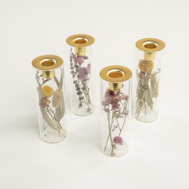 Plante Uscate în tub de sticlă – obiect decorativ cu suport lumânare